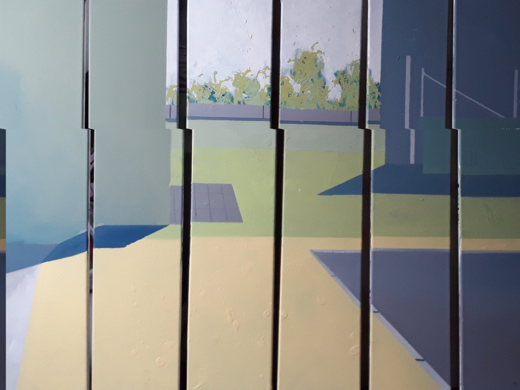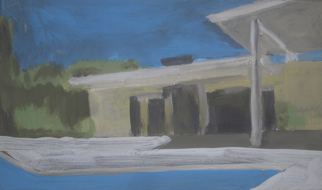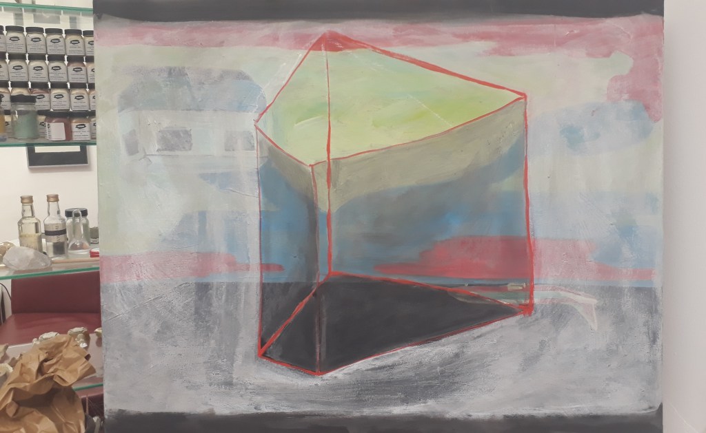 Die Malerei geht von einem Foto aus, das auf Leinwand übertragen wird. Anschließend wird das Motiv so lange variiert und reduziert bis es oft ganz abtaucht, aber die anfängliche Atmosphäre noch vorhanden ist.